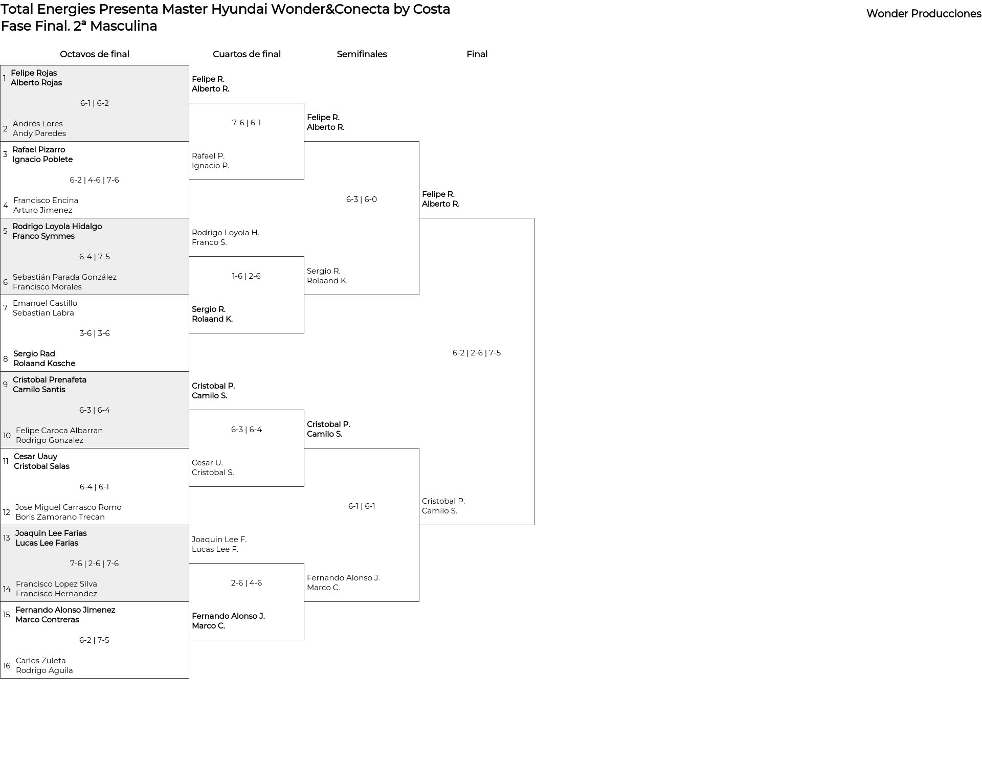 Cuadro principal 2ª Masculina
