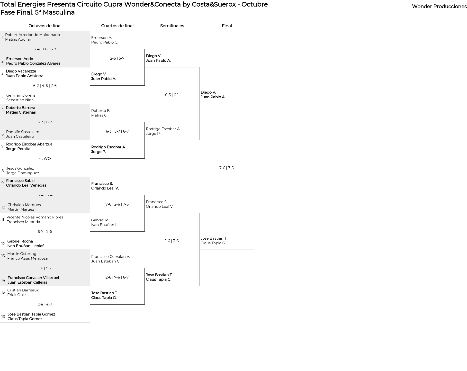 Cuadro principal 5ª Masculina